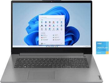 Von der Marke Lenovo stammt das Notebook IdeaPad 3 17IAU7. Auf dem großzügigen 17,3 Zoll-Bildschirm lassen sich Fotos, Filme und Anwendungen in hochauflösender Qualität genießen. Das vorinstallierte Betriebssystem Windows® 11 Home lässt dich direkt mit der Arbeit beginnen. Peripheriegeräte und einen Bildschirm kannst du einfach per USB- sowie HDMI-Schnittstelle anschließen. Für Video-Chats, Fotos und Filme eignet sich die in der Frontseite eingebaute Web-Cam. Wenn du einen Laptop suchst, der ein Betriebssystem vorinstalliert hat und über praktische Anschlussmöglichkeiten verfügt, ist dieses Modell eine gute Option. Als Alternative zum klassischen Computer auf deinem Schreibtisch eignet sich der Lenovo-Laptop dank seines 17,3 Zoll Displays. Ein gutes Bild wird durch die HD+-Auflösung mit 1600 x 900 Pixeln erreicht.