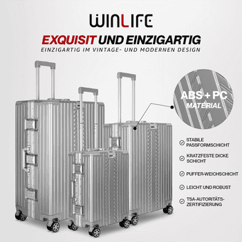 Mit seinem modernen Design in Silber vereint dieser Koffer Eleganz mit Funktionalität – ein praktischer, langlebiger und stilvoller Reisebegleiter!